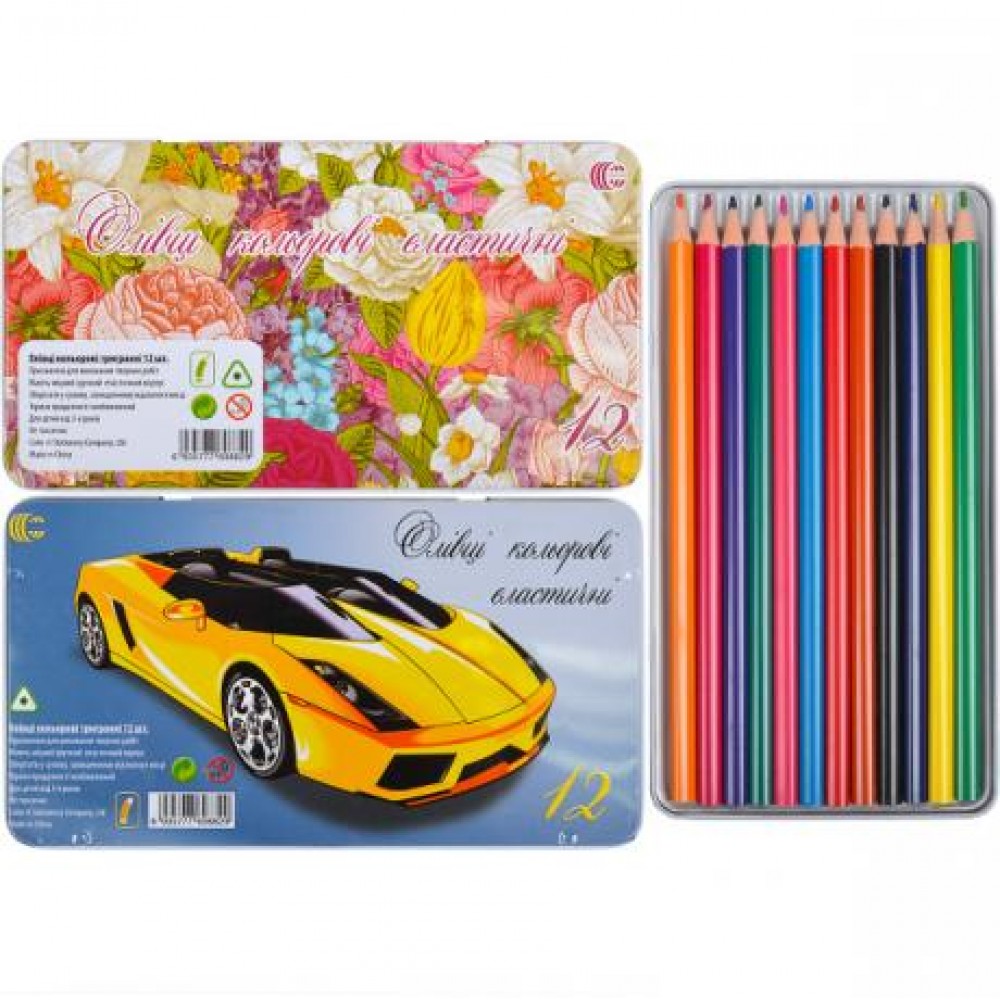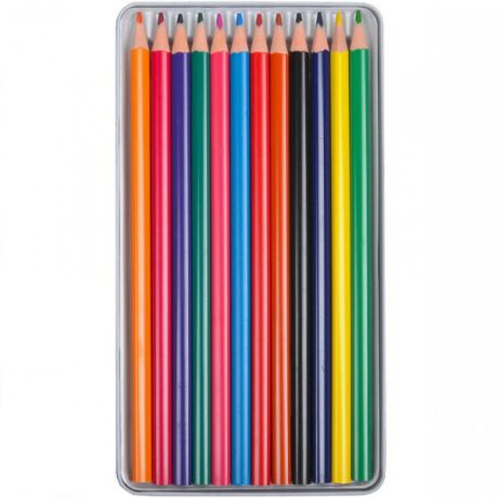 Набір кольорових олівців у металевому пеналі. 12 кольорів. Деревина високої якості, не ламається. М'які кольорові олівці залишають якрій і барвистий слід на папері всіх типів.