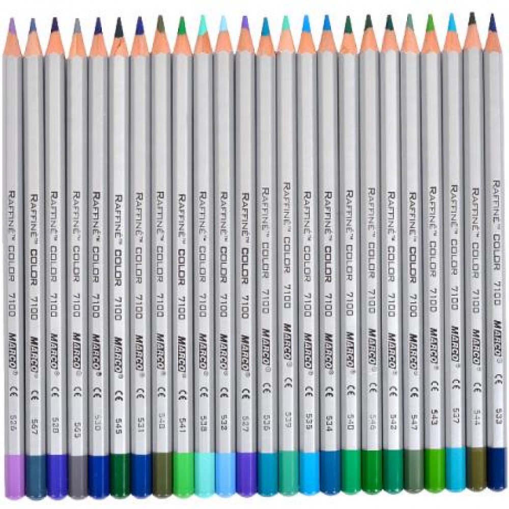Олівці кольорові професійні Marco "Raffine" 72 кольору. М'які кольорові олівці залишають якрій і барвистий слід на папері всіх типів. Вдала добірка строкатих і глибоких темних тонів дасть можливість розкрити весь художній потенціал. Кольорові олівці преміум клас Marco не потребують сильному тиску на олівець для отримання яскравою лінії малюнка, що дозволяє без особливого навантаження отримати барвисту картинку навіть самому маленькому художнику. Рекомендовані до застосування в дошкільних установах і школах. Олівці виготовлені з натуральної деревини, покриті лаком на водній основі, тиснення сріблом. Вони упаковані в картонну коробку у вигляді пенала. Діаметр гріфлеля: 2,9 мм