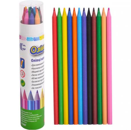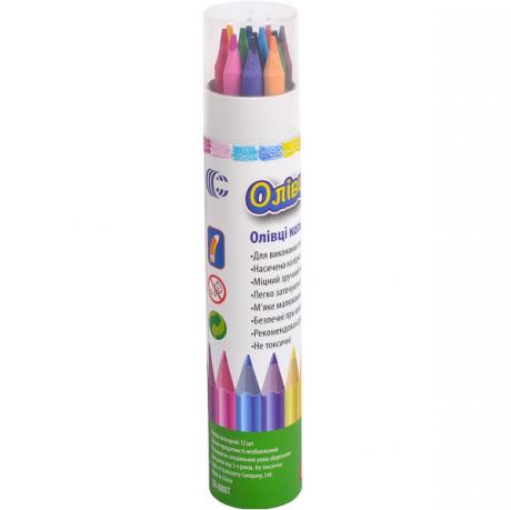 Комплект включає 12 трикутних олівців різних кольорів. Олівці м'які, еластичні, стандартного розміру. Усі вони зберігаються в картонному тубусі.