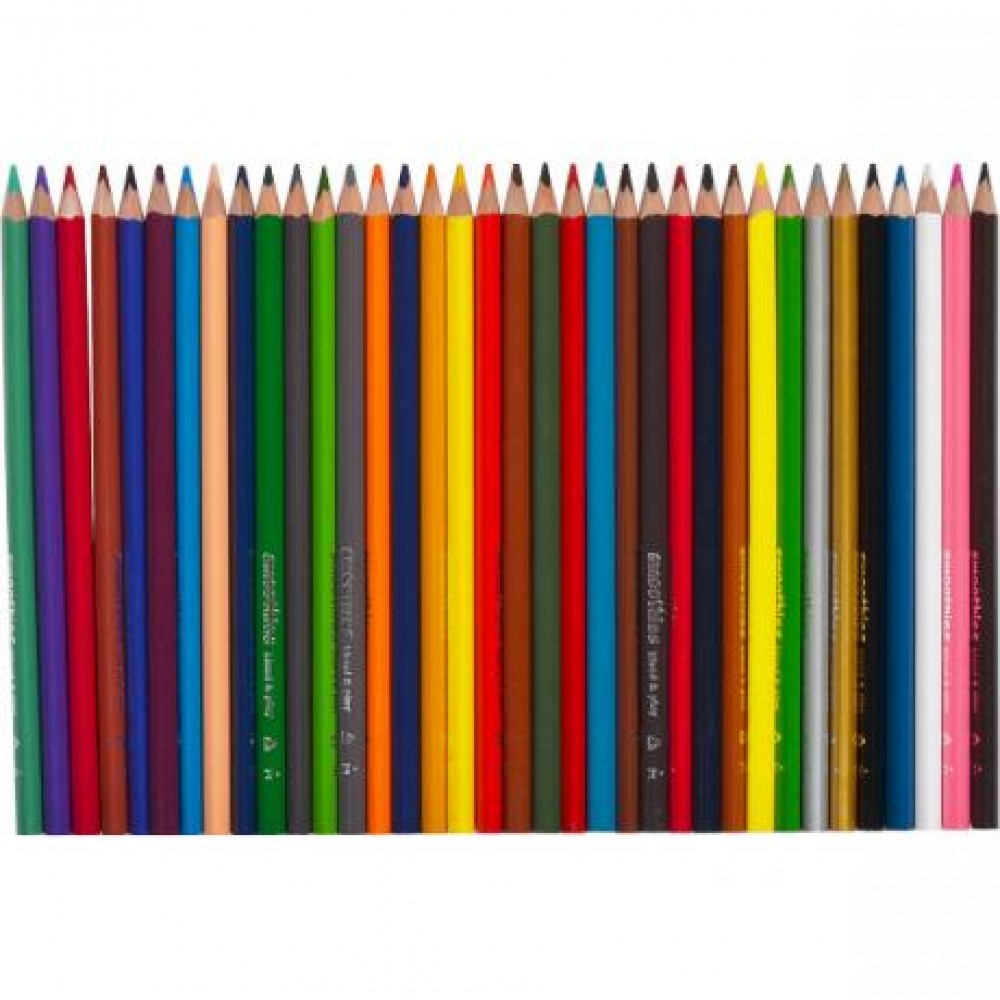 Олівці кольорові Marco "Smoothies blend play" 36 цв. М'які кольорові олівці трикутної форми якрий, що залишають, і барвистий слід на папері усіх типів. Кольорові олівці Marco не потребують сильного тиску на олівець для отримання яскравої лінії малюнка, що дозволяє без особливого навантаження отримати барвисту картинку навіть найменшому художникові. Упаковка-картонная коробки. Діаметр грифеля 3.3 мм