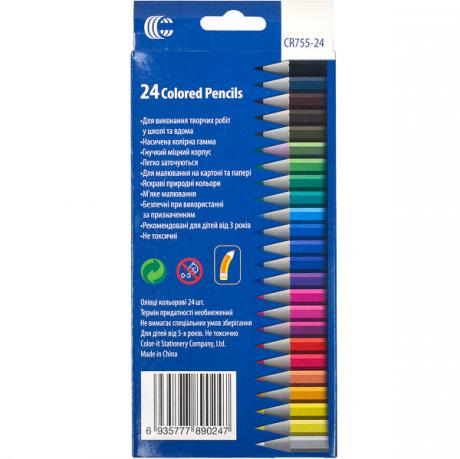 Набір кольорових олівців на 24 кольори в картоной упаковці. На вигин трохи "еластичний"