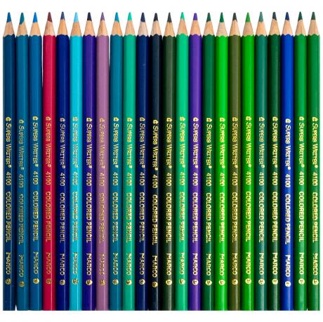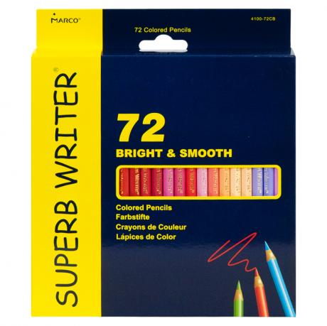 Кольорові олівці Marco містять 72 кольори. М'яка грифельна частина забезпечує яскравий слід на різних типах паперу. Для малювання не потрібно прикладати великий тиск, що підходить для дітей. Призначені для використання в дошкільних закладах та школах. Упаковка картонна.