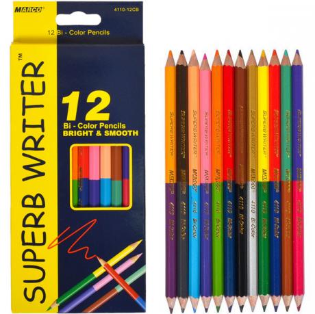Олівці кольорові двосторонні Marco 12 шт. 24 кольори 4110-12CB. М'які кольорові олівці залишають яскравий і барвистий слід на папері всіх типів. кольорові олівці Marco не потребують сильного тиску на олівець для отримання яскравої лінії малюнка, що дозволяє без особливого навантаження отримати яскраву картинку навіть наймолодшому художнику. Рекомендовані до застосування в дошкільних установах і школах. У картонній упаковці.