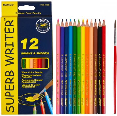 Акварельні олівці Marco Superb writer 12 кольорів. Акварельні олівці-це дуже зручно кожному митцеві, як початківцю так і досвідченому. Ви малюєте олівцем на акварельному папері, а після мокрою кистю розводите необхідні Вам моменти. Графіт акварельного олівця зроблений із спресованого пігменту акварельного фарби. діаметр грифеля 2,9 мм У картонній упаковці.