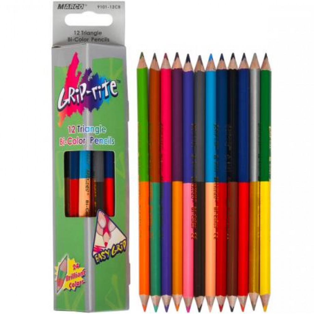 Кольорові олівці Marco 9101-12CB включають 24 кольори. Вони мають м'які двосторонні графітні стрижні трикутної форми, які легко залишають яскравий слід на папері різних типів. Не потребують сильного тиску для створення яскравої лінії, що дозволяє малювати без зусиль. Рекомендовані для використання в дошкільних установах і школах. Упаковані в картонну коробку.