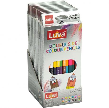 Унікальний набір кольорових олівців LUVA: 12 двосторонніх олівців = 24 кольори! Ідеально підходять для шкільних занять, розмальовок і творчих проєктів. Легко заточуються, залишають яскравий і рівномірний слід. Компактний формат дозволяє економити місце в пеналі. Стильна упаковка з яскравим дизайном — чудовий варіант для подарунка.