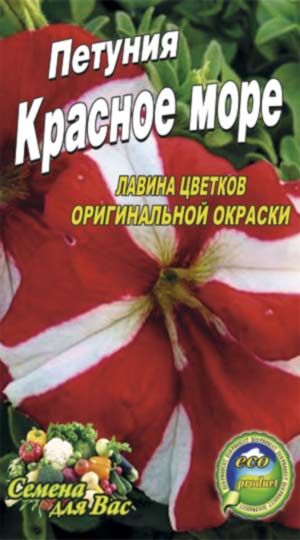 Петуния Красное море F1 Однолетнее растение. Стебли прямостоячие, ветвистые, высотой 25-40см. Цветки с приятным ароматом, простые, диаметром 5-10см, воронкообразной формы, красного цвета с белыми полосами. Выращивают через рассаду в марте-апреле, или посевом семян в открытый грунт в мае-июне. Цветет обильно с июня до заморозков. Используется для оформления клумб, рабаток, балконов, садовых ваз и подвесных горшков.