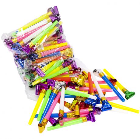 Набір карнавальних свистків (100 шт.) — веселий аксесуар для святкових подій. У комплекті 100 свистків довжиною 11 см, виготовлених із легкого та безпечного пластику з блискучим фольгованим наконечником. Свистки видають характерний святковий звук і чудово підходять для днів народження, карнавалів, дитячих ранків, корпоративів і новорічних вечірок. Компактне пакування зручне для масових заходів або подарункових наборів.
