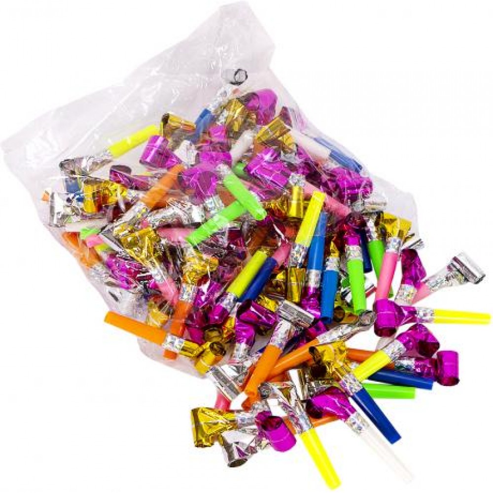 Набір карнавальних свистків (100 шт.) — веселий аксесуар для святкових подій. У комплекті 100 свистків довжиною 5,5 см, виготовлених із легкого та безпечного пластику з блискучим фольгованим наконечником. Свистки видають характерний святковий звук і чудово підходять для днів народження, карнавалів, дитячих ранків, корпоративів і новорічних вечірок. Компактне пакування зручне для масових заходів або подарункових наборів.