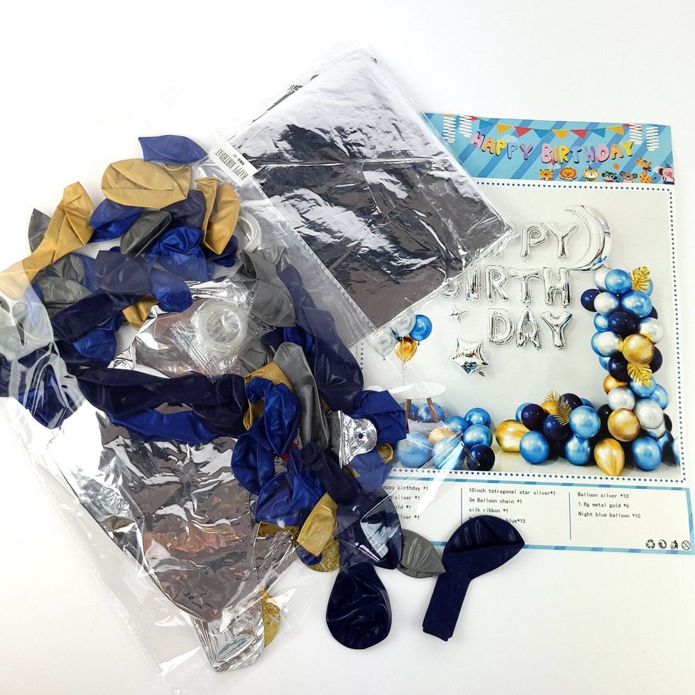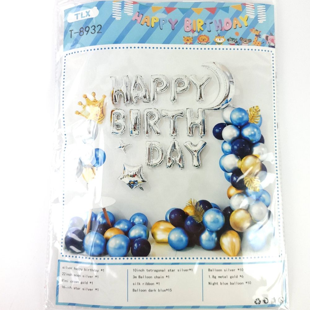 Фотозона с воздушных шаров "Happy birthday" серебро и синее Разноцветный Unison (T-8932)