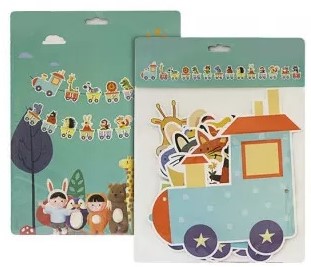 Гирлянда флажки HAPPY BIRTHDAY , паровозик с животными Зеленый Unison (HB-1066)
