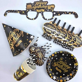 Набор праздничный Нарру Birhday черный с золотом 36 единиц Черный Unison (871302)