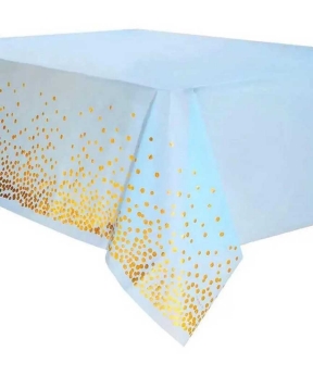 Скатерть розовая 137 х 183см,Горошек золотой Голубой Без бренда (871035)