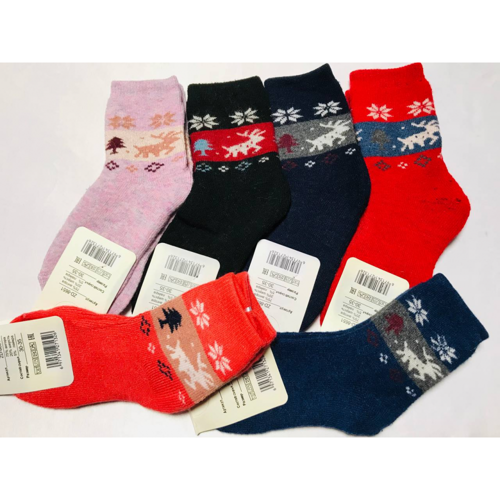 Детские новогодние носки шерстяные на овчине от 23 до 35 (11119) с тормозами
