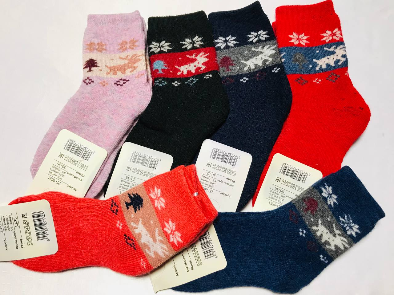 Детские новогодние носки шерстяные на овчине от 23 до 35 (11118) с тормозами