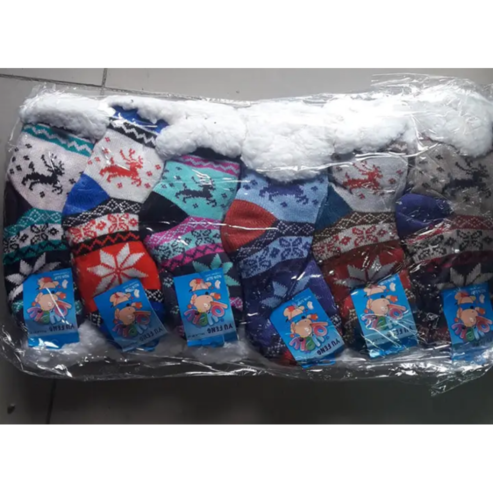 Вязаные, теплые, нескользящие носочки для подростков. Разм.31-35;27-31. Утепленные мехом.