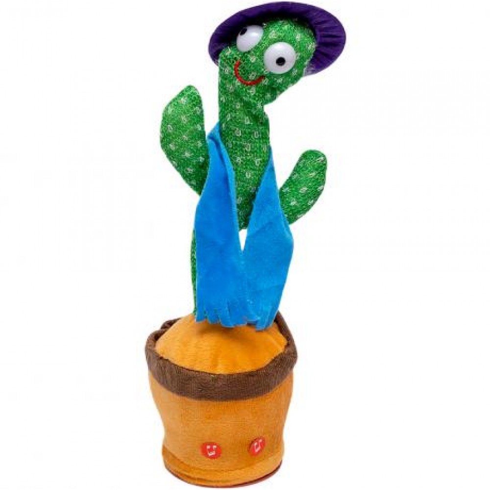 Інтерактивна музична іграшка у формі кактуса з усмішкою. Вона співає, танцює, світиться та повторює ваші слова. Живлення здійснюється від вбудованого акумулятора, зарядний кабель входить до комплекту. Розмір іграшки становить 34 см.