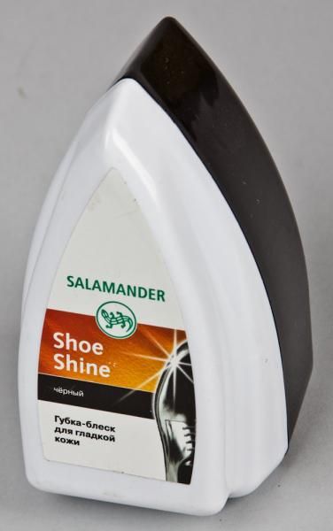 Губка-блеск Salamander Shoe Shine применяется для ухода за гладкой кожей. Бережно ухаживает за обувью из гладкой кожи, а также превосходно очищает от пыли и других загрязнений. В состав входит губка, силиконовое масло и пигменты. Цвет восстанавливается благодаря пигментам чёрного цвета. Силиконовое масло придаст обуви блеск без дополнительной полировки. Прост в использовании, нужно только потереть поверхность губкой-блеском.