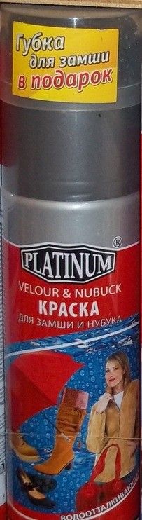 Краска-аэрозоль, благодаря специальной формуле очищает поверхность и восстанавливает цвет обуви и других изделий из замши и нубука. Пленка, образованная краской не пропускает воду, обеспечивает эластичность и препятствует образованию пятен.