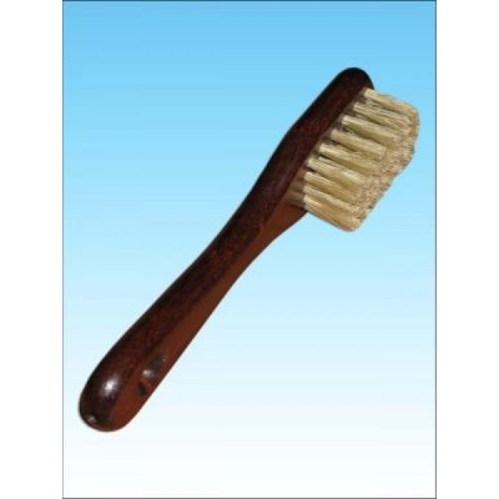 Новую щетку для обуви из гладкой кожи мы рекомендуем погрузить на 10-15 минут в горячую подсоленную воду, из расчета 2 столовые ложки соли на пол-литра воды. Натуральная щетина станет эластичнее и мягче, благодаря чему щетка прослужит Вам дольше.