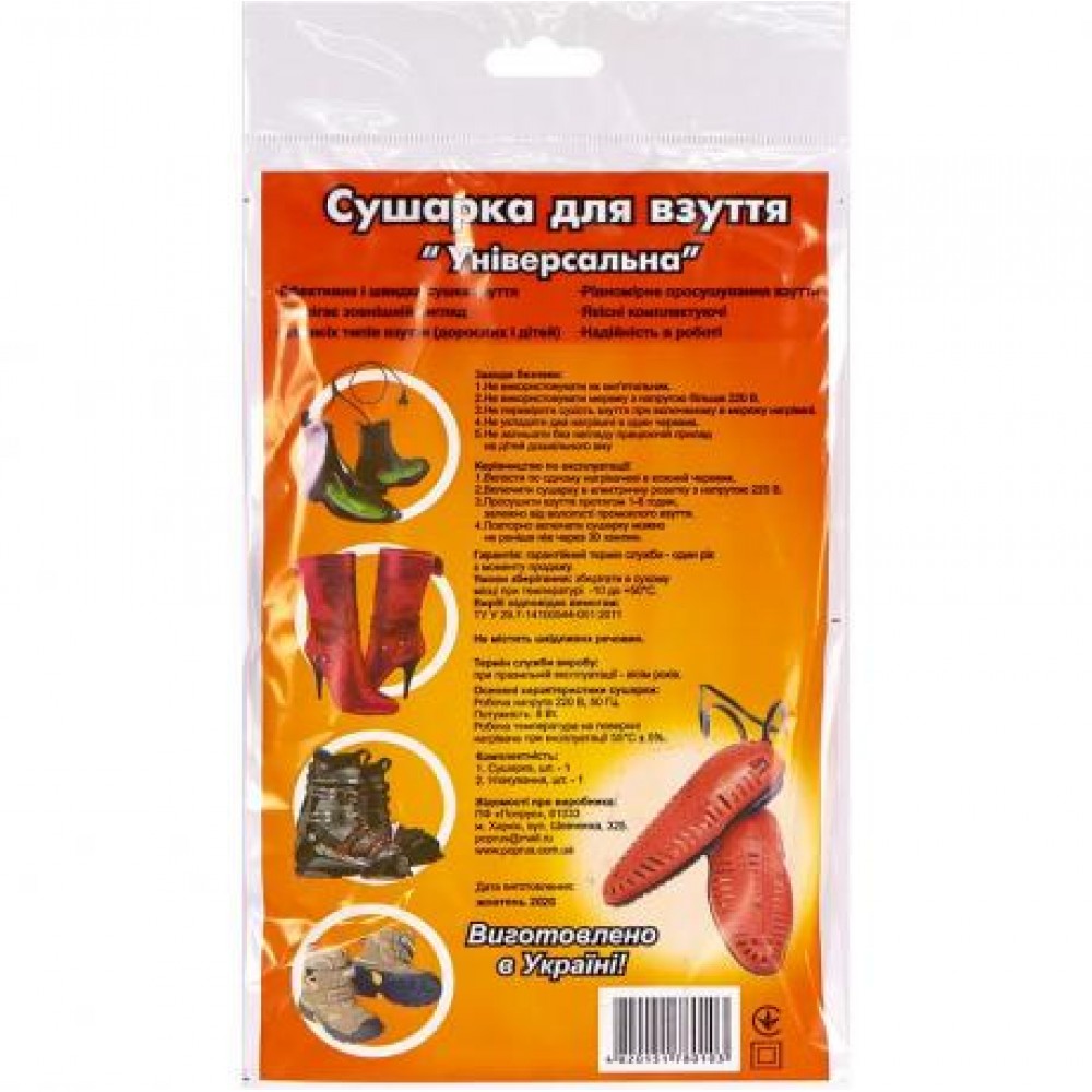 Сушарка для взуття дозволить Вам дбайливо просушити взуття. За рахунок рівномірного прогрівання при температурі 50 ° -60 ° С зберігається форма взуття, ніг буде завжди комфортно і сухо. Матеріал корпусу: пластик. Тип живлення: мережа 220 В. Потужність: 8 Вт. Довжина шнура 105см, розмір нагрівальної пластини 15*5,5*3,5см