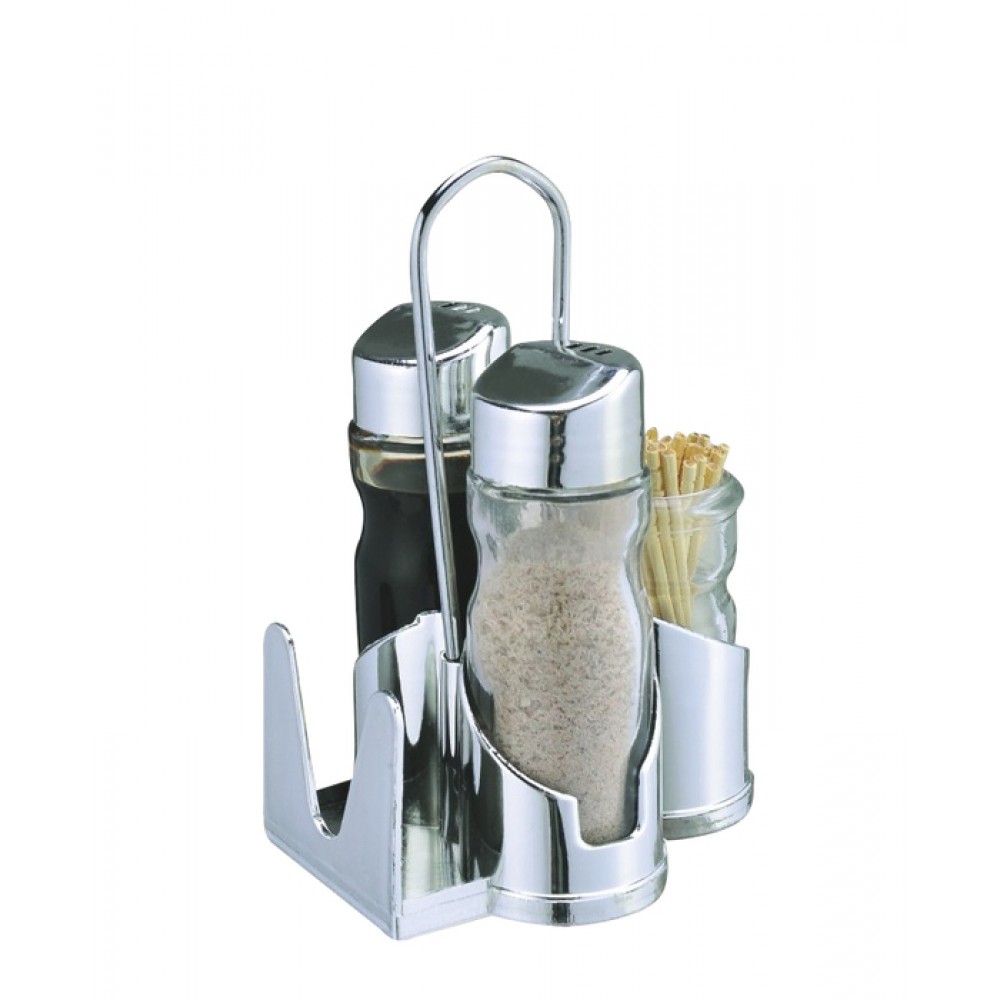 Набір для спецій на підставці: сіль / перець / салф, / зубоч. Стандарт ( 5 пр )