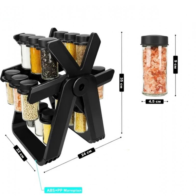 Набор для специй 18 баночек на крутящейся подставке на 360° Spice Rack – это функциональный и стильный аксессуар для вашей кухни, который облегчит вам хранение и доступ к специям. Она позволит вам организовать свою коллекцию специй таким образом, чтобы они всегда были под рукой во время готовки. Вращение на 360° - с возможностью вращения подставки на 360° вы легко найдете нужную баночку со специями. Большая емкость - в комплекте поставляется 18 баночек из стекла большого диаметра емкостью 100 мл, чтобы разместить различные виды специй. Экономия места - трехмерный дизайн карусели позволяет сэкономить пространство на кухне, особенно в небольших помещениях. Практичный дизайн - стабильная основа предотвращает случайное переворачивание. Материал не прилипает к маслу и легко моется, обеспечивая удобство использования. Простота в использовании - стеклянные баночки легко открываются и плотно закрываются, сохраняя аромат и свежесть приправ. Карусель для специй является практичным и удобным аксессуаром для вашей кухни