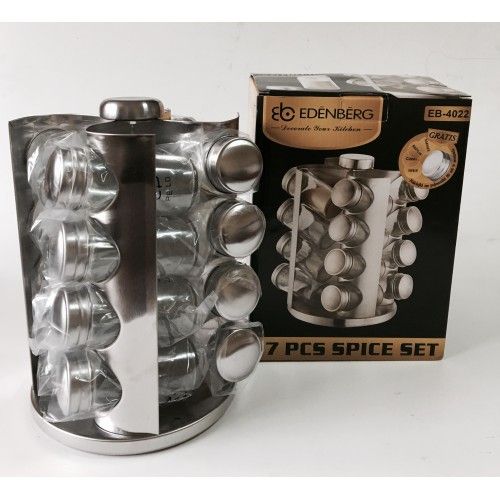 Набор для специй на подставке из нержавейки вращается. В набор входит 16 стеклянных ёмкостей