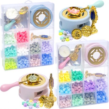 Набір для роботи із сургучем. Сургучные відбитки використовуються прикраси конвертів, подарунків, альбомів. Такий спосіб декору надає особливої справжності. Завдяки різнобарвним шматочкам воску в наборі можна створювати унікальні колірні схеми. У наборі:гранули для виготовлення сургуча: 10 кольорів (кожного по ~15 грам),парафінова свічка 1шт, ложечка для плавлення сургуча: 1 шт.; підставка для плавлення сургуча: 1 шт.;сургучний металевий друк із трьома змінним відбитками