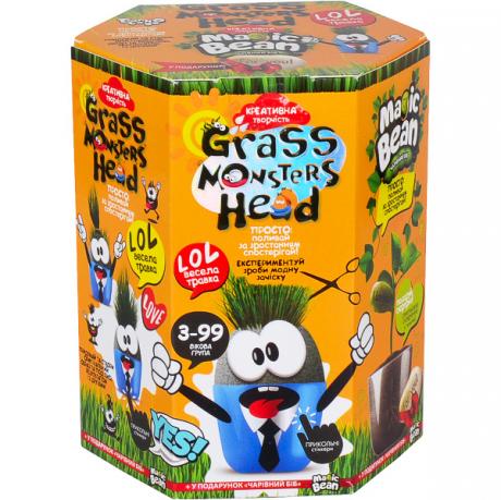 Набір креативної творчості "GRASS MONSTERS HEAD" - просто поливай і за зростанням спостерігай!!! В комплекті : скляночка заготівля з насінням 1шт, комплект стікеров, чарівний біб 1 шт, скляночка 1шт, інструкція. Оформлення українською мовою. Вік 3+. Розмір упаковки 14*11,5*6см