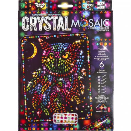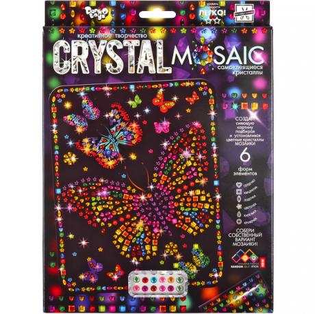 "Crystal Mosaic" - серія креативного творчості, для створення сліпуче красивою мозаїки з різнокольорових кристалів, чарівної і чарівною своїм блиском і сяйвом граней! Мозаїка з кристалів це не просто красива картина, зроблена своїми руками, а й чудова можливість, відчути себе майстром «ювелірного мистецтва», адже кожен кристал встановлюється за велінням Вашого серця і з Вашим уявленням про прекрасне. Як це зробити? Дуже просто! У наборі: картина-схема, комплект кристалів, інструкція. Розмір упаковки: 28х22х1,5 см. Вік: 5+