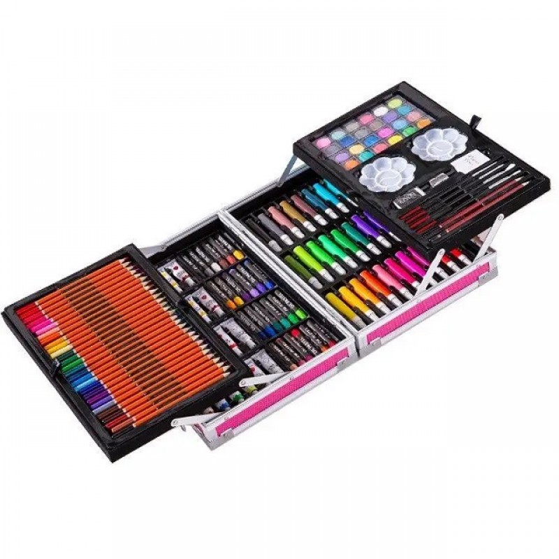 Детский чемоданчик с принадлежностями для рисования поможет ребенку творить свои собственные шедевры! Благодаря этому набору дети смогут проводить время весело и познавательно, не обращаясь к играм и раскраскам в электронном виде. В наборе для творчества Drawing Board 145 - есть все необходимое для развития творческих навыков ребенка. В набор входят карандаши, фломастеры, восковые мелки и краски всех цветов. Также есть кисти для красок, ластик для стирания, точилка для карандашей и емкость для смешивания красок. Вам не придется ничего докупать отдельно. Удобный кейс с ручкой для переноски позволяет использовать данный набор где угодно и с комфортом его переносить. Все предметы в чемоданчике будут на своих местах, ничего не потеряется. После открытия кейс трансформируется во многоуровневую конструкцию для творчества, все элементы которого находятся в легкой и быстрой доступности - все перед глазами, каждый предмет на своем месте. Комплектация: Цветные карандаши: 28 шт.; Простые карандаши: 2 шт.; Кисточки разного размера: 4 шт.; Ластик: 2 шт.; Точилка; Резервуар для краски: 2 шт.; Акварельные краски: 24 шт.; Краски в тюбиках: 24 шт.; Пастели: 24 шт.;Фломастеры: 33шт; Кейс для хранения. В 1 ящике - 6шт ( 3 Розовых и 3 Синих чемоданчика )