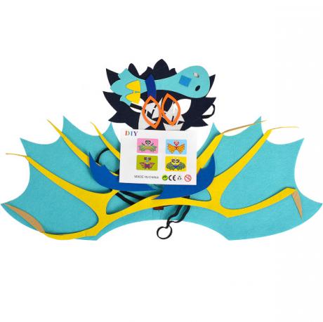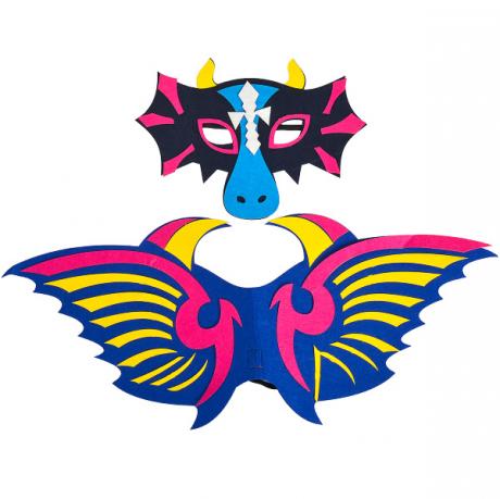 Набір для створення карнавального костюма з фетру. У комплекті фетрові деталі для виготовлення крил і маски. Крила мають розмір 60 x 23 см, маска - 20,5 x 17,5 см. Упаковка має розміри 30 x 29 см. Набір підходить для дітей і не вимагає спеціальних навичок.