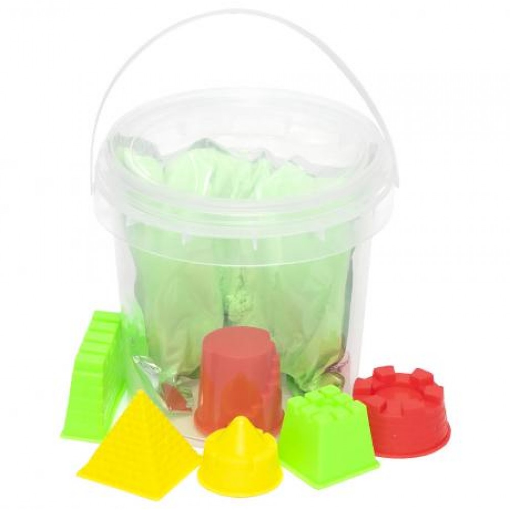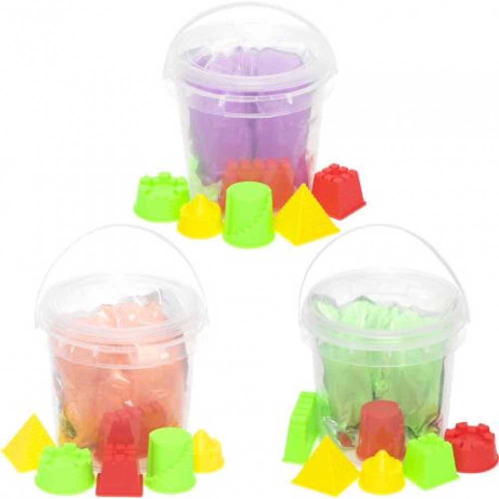 Набір кінетичного піску вагою 500 г складається з 98% кварцового піску та 2% полімеру. Полімер є нетоксичним і гіпоалергенним. Кінетичний пісок не бруднить руки, оскільки барвник на основі силікону не розчиняється у воді. У комплекті є пластикові пасочки. Кольори представлені в асортименті. Рекомендується для дітей віком від 3 років.