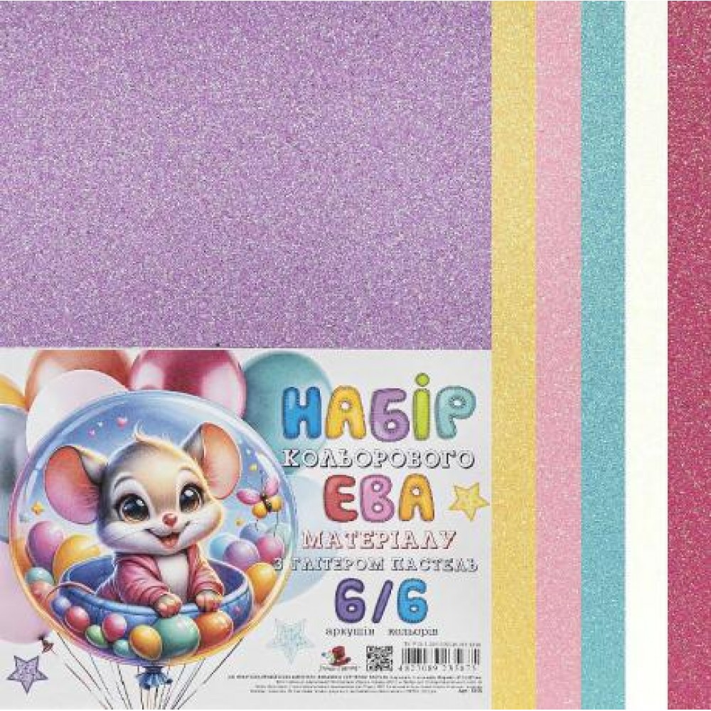 Фоаміран МІКС КОЛЬОРІВ 6 листів з глітером ПАСТЕЛЬ А4, 21х29,7см, 2 мм 235875