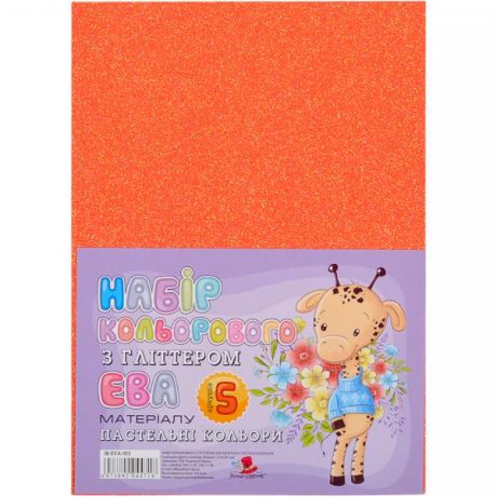 Фоаміран оранжево-червоний гліттер А4 IR-EVA-003,21х29,7см, 2,00 мм 5 лист.