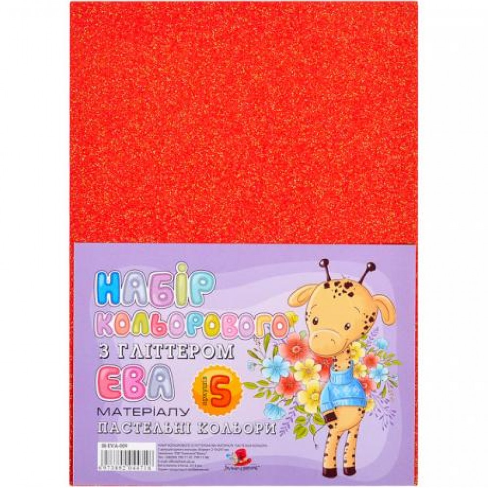 Фоаміран червоний гліттер формату А4 (IR-EVA-009) розміром 21х29,7 см і товщиною 2,00 мм. У комплекті 5 аркушів. Використовується в рукоділлі для створення флористичного декору, біжутерії, прикрас, весільних композицій, елементів упаковки та вітальних листівок. Підходить для дитячої творчості, виготовлення аплікацій та виробів.
