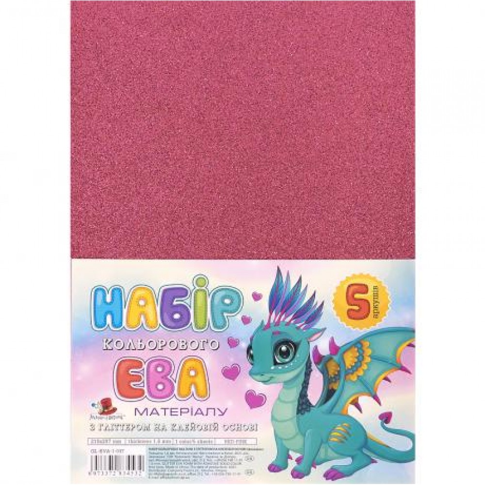 Фоаміран червоно-рожевий з гліттером клейова основа GL-EVA-1-037 А4, 21х29,7см, 1.6 мм, 5 лист. ФЦ014/20