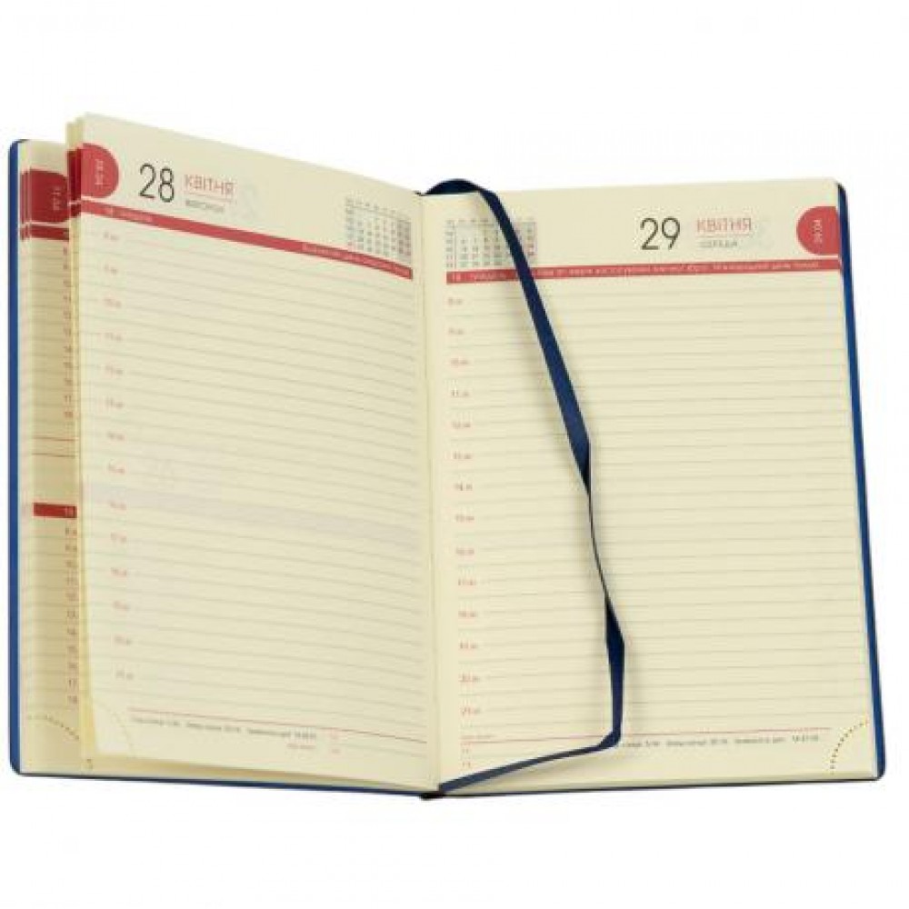 Щоденник датований 2026, А5, 160 сторінок Стильний щоденник формату А5 на кремовому папері щільністю 70 г/м². Блок надрукований у 2 кольори українською мовою. Гнучка обкладинка зі штучної шкіри із заокругленими кутами. Форзац кремового кольору без друку, є лясе-закладка. Кожен аркуш має перфорацію нижнього зовнішнього кута для зручного відриву. Індивідуальна упаковка в прозорий пакет.