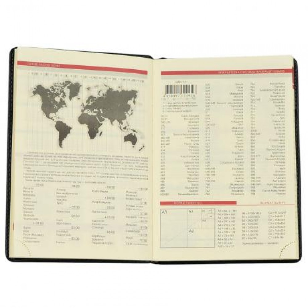 Стильний щоденник формату A5 на кремовому папері щільністю 70 г/м². Внутрішній блок надрукований у 2 кольори українською мовою. Тверда обкладинка зі штучної шкіри із заокругленими кутами забезпечує надійність та стиль. Форзац кремового кольору без друку, передбачена закладка‑ляссе.
