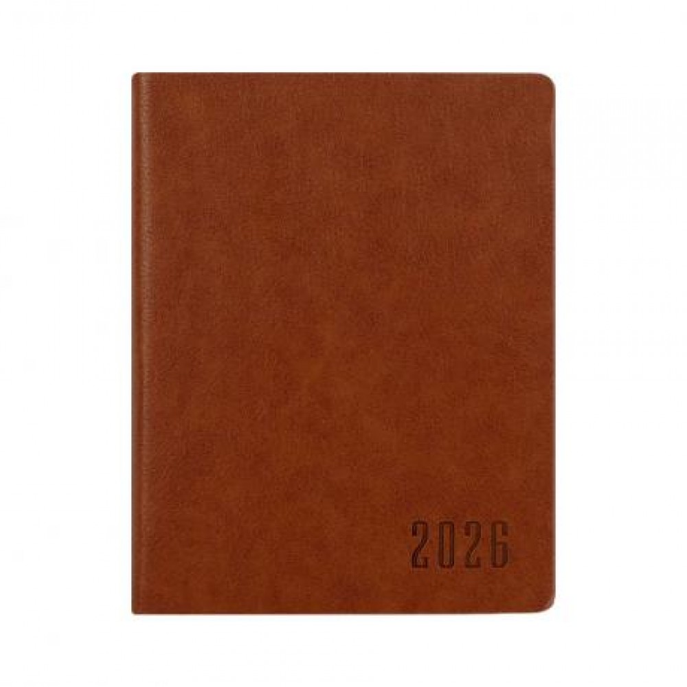 Щоденник датований 2026, A6, 160 стор. Компактний щоденник формату A6 на кремовому папері щільністю 70 г/м². Внутрішній блок надрукований у 2 кольори українською мовою. Гнучка обкладинка зі штучної шкіри із заокругленими кутами. Форзац кремового кольору без друку, є закладка‑ляссе. Індивідуальна упаковка в прозорий пакет.