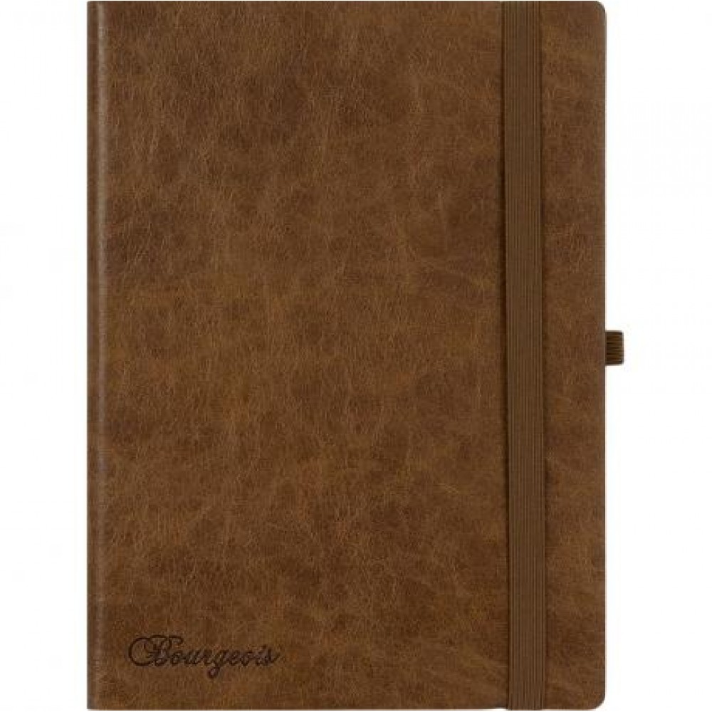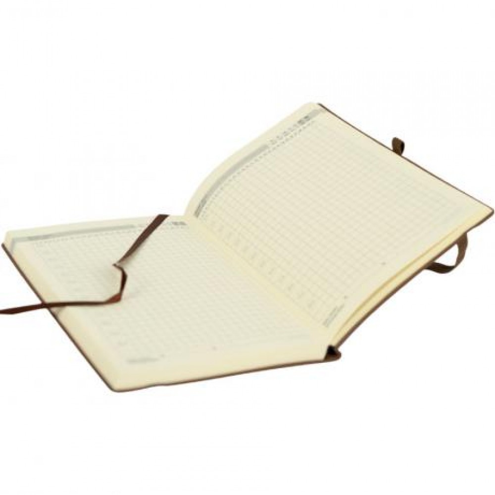 Стильний недатований щоденник формату A5 на кремовому папері щільністю 70 г/м². Внутрішній блок у клітинку, друк в 1 колір українською мовою. Тверда обкладинка зі штучної шкіри із заокругленими кутами, оснащена резинкою та тримачем для ручки. Форзац кремового кольору без друку, є лясе‑закладка.