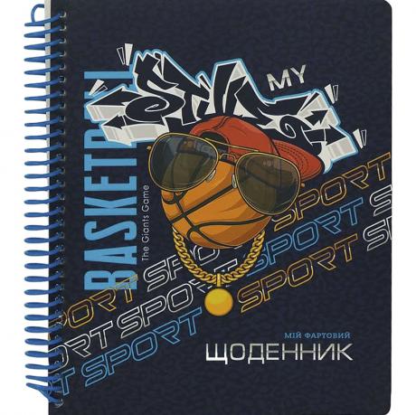 Щоденник шкільний 165*208 mm. 40 арк. Обкладинка з картону 500g/m2 на СПІРАЛІ (одинарна ПЛАСТИКОВА спіраль, товщина дроту 2 мм, діаметр кілець 1,5 см).Папір кремового кольору 70г/м2, друк 1+1, на Українській мові. Повнокольоровий друк 4+0 та матова ламінація. Індивідуальне пакування в прозорому пакетi зі стікером