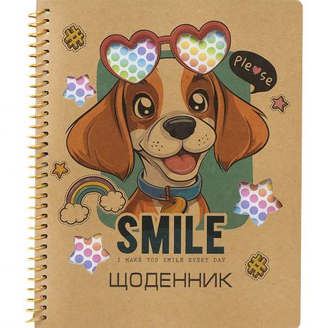 Щоденник шкільний 165*208 mm, 40 аркушів. Обкладинка з КРАФТ-картону 600g/m2 на СПІРАЛІ (одинарна МЕТАЛЕВА спіраль, товщина дроту 1,2 мм). Папір кремового кольору 70г/м2, друк 1+1, на Українській мові. Повнокольоровий друк 4+0 та матова