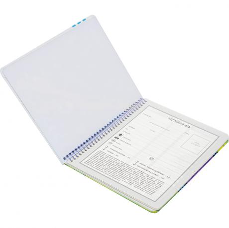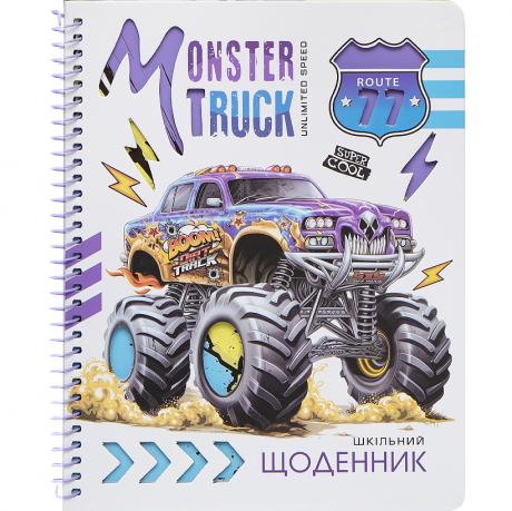 Щоденник шкільний 165*208 mm, 40 аркушів.Тверда обкладинка на СПІРАЛІ (одинарна МЕТАЛЕВА спіраль, товщина дроту 1,2 мм). Папір кремового кольору 70г/м2, друк 1+1, на Українській мові. Повнокольоровий друк 4+0 та матова ламінація + висічка частини зображення на обкладинці. Індивідуальне пакування в ОПП-пакетi зі стікером.