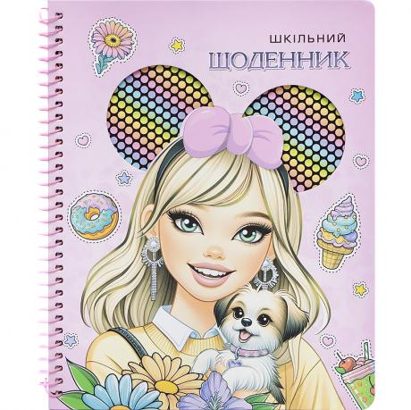Щоденник шкільний 165*208 mm, 40 аркушів.Тверда обкладинка на СПІРАЛІ (одинарна МЕТАЛЕВА спіраль, товщина дроту 1,2 мм). Папір кремового кольору 70г/м2, друк 1+1, на Українській мові. Повнокольоровий друк 4+0 та матова ламінація + висічка частини зображення на обкладинці. Індивідуальне пакування в ОПП-пакетi зі стікером.