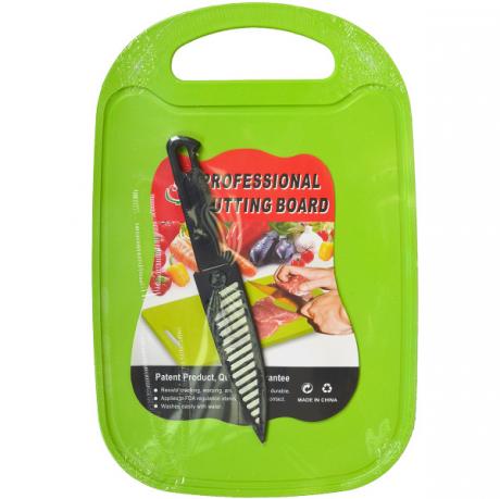 Обробна дошка з ножем «Овочі» HL6803 розміром 32×21 см — зручний набір для щоденного використання на кухні. Дошка підходить для нарізання овочів, фруктів та інших продуктів. У комплекті ніж розміром 21×3 см у захисному чохлі, що забезпечує безпечне зберігання та використання. Практичний варіант для дому та повсякденного приготування страв.