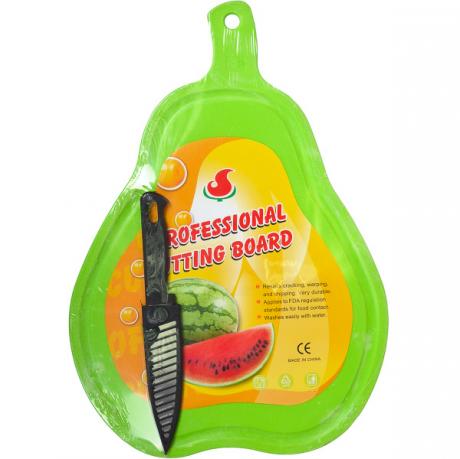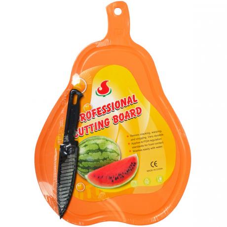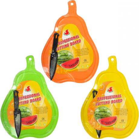 Обробна дошка з ножем грушоподібної форми розміром 36×25 см — зручний і практичний набір для щоденного використання на кухні. Дошка підходить для нарізання овочів, фруктів та інших продуктів, забезпечуючи комфортну робочу поверхню. У комплект входить ніж, який зручно розміщується на дошці та завжди під рукою. Яскравий дизайн робить виріб охайним елементом кухонного простору. Підходить для дому та дачі.