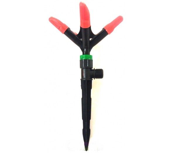 Дождеватель вертушка 5-ходовая предназначена для орошения приусадебного участка и огорода. Ороситель состоит из вращающегося корпуса, пяти регулируемых лопастей и подставки, которая соединяется со шлангом с помощью универсального штуцера. Выход с резьбой 3/4" на ножке обеспечивает последовательное подключение нескольких распылителей. Площадь орошения зависит от давления воды, до 13м2. Изделие выполнено из высокопрочного пластика.