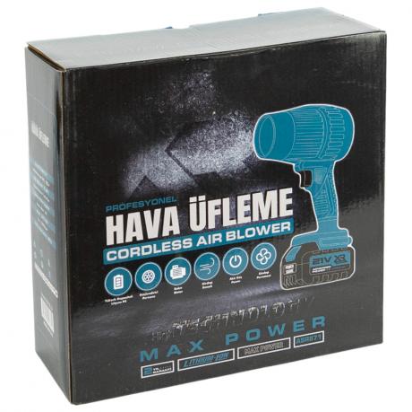 Акумуляторний турбовентилятор призначений для ефективного очищення робочих зон, видування пилу, тирси, листя та сміття в майстерні, гаражі, на будівництві або подвір’ї. Працює від акумуляторної системи з номінальною напругою 21V, забезпечуючи мобільність і стабільну потужність без підключення до електромережі. У комплекті передбачено два літій-іонні акумулятори ємністю 3000 mAh класу 5C з подвійним рядом із 10 елементів, що гарантує тривалий час роботи та надійну продуктивність. Ергономічна ручка забезпечує зручне та безпечне користування. Заряджання здійснюється за допомогою мережевого зарядного пристрою, який входить до комплекту. Підходить для побутового та професійного застосування.